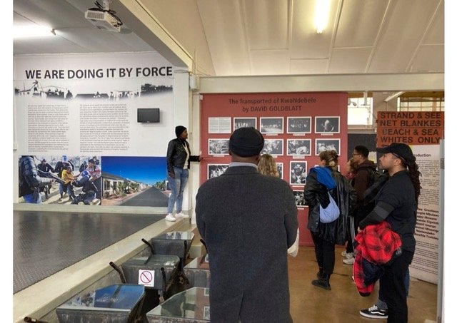 Die Studienreise fand in Kooperation mit dem Graduiertenkolleg der Deutschen Forschungsgemeinschaft (DFG) anschließen – ausschließen: Kulturelle Praktiken jenseits von Globalisierung (Universität, Kunsthochschule für Medien und Technische Hochschule Köln) und dem African Programme in Museum and Heritage Studies der WCU, University of Western Cape, statt. Die Organisator:innen sind Martin Zillinger, Anna Brus, Ciraj Rassool, Fabian Lüke, Carla Tiefenbacher, Amelie Greefe, Katrin Antweiler und Michi Knecht. Am Beispiel verschiedener Erinnerungsorte in Kapstadt und Johannesburg und den umkämpften Geschichten, die mit ihnen verbunden sind, haben wir die Potenziale unterschiedlicher kuratorischer, kulturwissenschaftlicher und ethnographischer Praktiken diskutiert. Wie können neue Beziehungen zwischen einerseits institutionalisierten und andererseits durch Ignoranz, Repression, Konformität oder Verleugnung unsichtbar gemachten Erinnerungskulturen und den involvierten ‘Communities of Struggle’ und ‘Communities by Implication‘ (Erica Lehrer) gedacht und sichtbar gemacht werden? Museen als Orte der Erinnerung bringen durch spezifische materielle und diskursive Praktiken Erzählungen und Vorstellungen hervor, die jeweils in den Widersprüchen post/kolonialer Grenzziehungen situiert sind und transformiert werden. In Südafrika zeigen sich die selektiven Öffnungen zu sozialen Kollektiven und Formen des Begehrens immer noch auch in Resonanz mit den rassifizierten Politiken des Apartheidregimes. Die Autumn-/Spring-School hat Forschende und Studierende aus verschiedenen politischen, geografischen und sozialen Kontexten zusammengebracht. Wir wollen „im Vertrauen aufeinander gemeinsam Unterschiede – und einen Unterschied – machen“ (Helen Verran). Lernen, teilen, streiten, arbeiten um eingeschliffene Wahrnehmungen wie Realitäten zu dezentrieren, zu irritieren und neue Imaginationen, sowie Möglichkeitsräume für kuratorische und forschende Praktiken zu eröffnen.